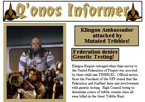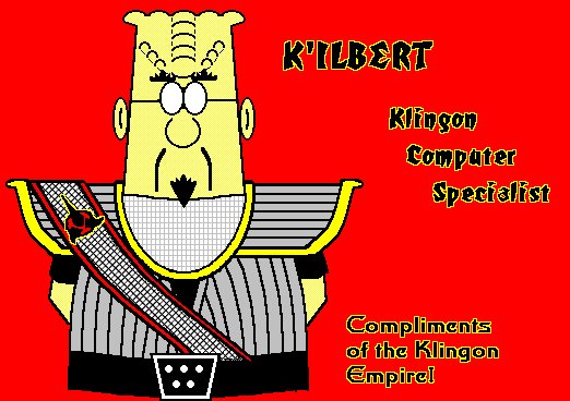 Klingonize is a term conceived by Capt. K'wISt zantai-XuDetlh (Joel Nye) by which things are converted into Klingon related materials. This is sort of a fun way of doing different things with a Klingon style. The following was created by Capt. K'wISt.
