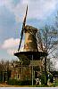 A typical windmill in a street in Delft, a town famous for its ceramic tiles. |