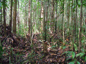 | Betta brownorum - male with double lateral blotch. Picture on the below right is the peat swamp forest. |