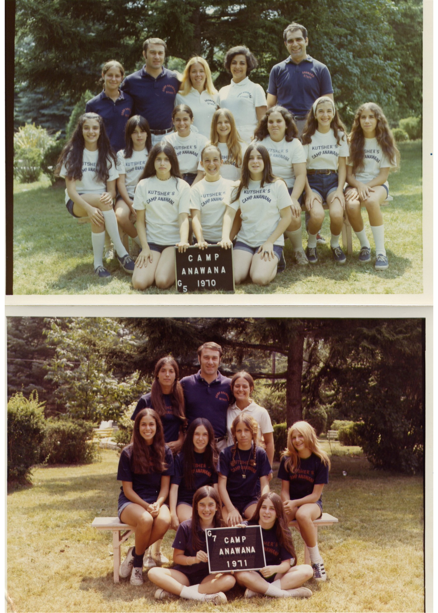 | TOP PICTURE: Camp Anawana, Girls Bunk 5, 1970 Susan Krause, Alan Steinberg, Ellen Morse, Doris Selkowiz, Lou Selkowitz Peggy Rawitt, Debbie Gould, Lisa Novick, Stacie Budin, Lori Fallek, Lori Goldstein, Susan Goldstein Lori Solomon, Lisa Kleiman, Jackie Alpert BOTTOM PICTURE: Camp Anawana, Girls Bunk 7, 1971 ?, Alan Steinberg, Sherry Shapiro (?) Lisa Novick, Jeannie, Susan Goldstein, Stacey Budin, Debbie Gould, Jackie Alpert Back to Album Previous Picture Next Picture |