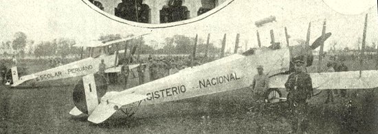 Abajo, el "Magisterio Nacional" Nº 1 y el "Escolar Peruano" Nº 2. Estos curiosos nombres se deben a que los aviones eran comprados con dinero recaudado mediante colectras públicas entre los diversos gremios de la población.