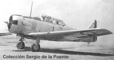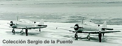 La Fuerza Aérea del Perú recibió en total más de 30 AT-6, en sus versiones B, D y G. (Foto superior) llegada de los primeros 9 AT-6B (NA.84) a Las Palmas, el 19 de diciembre de 1944; (Foto inferior) 2 AT-6G alineados durante una revista en 1955; se les distingue por tener un carenado en la hélice, la antena del radiogoniómetro en el fuselaje trasero y los portabombas debajo de las alas.