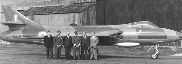 Uno de los mejores aviones de caza diseñados, equiparon el Escuadrón de Caza Nº 14 (posteriormente Grupo Aéreo Nº 6) desde 1956 hasta fines de los '70; también conformaron la escuadrilla de acrobacia llamada "Los Cuatro Ases". Arriba vemos el ejemplar existente en el museo de la FAP, en la Base de Las Palmas. Abajo, el momento de la entrega del primer Hunter a la FAP. Curiosamenete, este fue un acto meramente simbólico ya que el XE-704 nunca llegó al Perú.