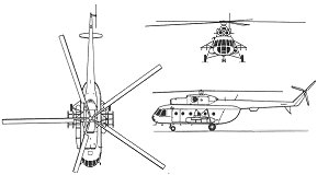 Versión modernizada y repotenciada del Mi-8, las diferencias externas visibles son la posición del rotor de cola, a la izquierda del aparato, mientras que el Mi-8 lo tiene a la derecha y las tomas de aire de los motores, más cortas que las del modelo original.
