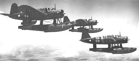 Aunque no pertenecieron a la aviación peruana, quiero incluir los Kingfisher en este trabajo debido a que fueron extensamente utilizados por los pilotos peruanos durante la Segunda Guerra Mundial, operando desde la base aeronaval de Corpus Christi, de la US Navy, en misiones de patrullaje marítimo en busca de submarinos enemigos. La foto nos muestra una escuadrilla en vuelo, tripulada por aviadores peruanos.