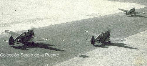 El entonces alférez CAP Rolando Gilardi prueba uno de los P-36. |