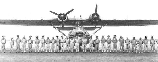 (Arriba) Las tripulaciones posando delante de un Catalina.