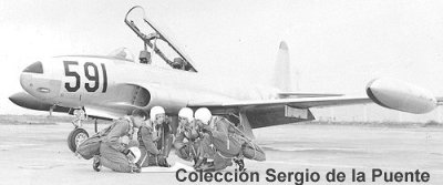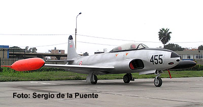 Primer avión propulsado por turborreactores que entró en servicio en la FAP, llegando los tres primeros el 8 de marzo de 1955; curiosamente, vinieron pintados todavía con los colores de la USAF. Fue utilizado como entrenador avanzado hasta 1981, aunque en los '50s y '60s era utilizado también como avión de combate junto con los F-80 Shooting Star.