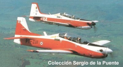 Los Tucanos, conocidos localmente como T-27, son empleados en las misiones de entrenamiento básico, apoyo táctico y lucha antidrogas. En esta foto vemos un T-27 luciendo nuevamente el esquema de pintura "Escuela" como el que usaran a su llegada en los años `8o.