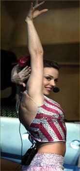 | NEWSPAPER CUTTINGS The Sun: Tassle do nicely, Kylie! Fans got a thighful of Kylie Minogue as she kicked off her first world tour in nine years wearing a fringed micro mini skirt. She raised temperatures in chilly Glasgow with six rapid costume changes. And it still looked like Kylie, 32 hadn't anything to wear. The Independant: As well as a formidable singing voice, she has a personality all of her own and it shines best during high energy dance beats, silver tassles and six inch stiletto heels. It's fantastic fun..has the crowd screaming...riotous fun night out. Glasgow Herald: The event of the year. I'd defy anyone to not experience the mardi gras of Kylie performing live and not have a smile across their face for the entire evening. Hits old and new were greeted with equal rapture and each costume and set change echoed even more delight. Daily Echo: Kylie proved beyond any doubt that she is the princess of pop with a dazzling sell out show last night. From the moment the purple regal drapes embossed with her initials fell open mouthed at her stilletto feet. Fully grown men behaved like love struck teeny boppers as they packed out the Bournemouth International Centre last night. Everone could be heard chanting KYLIE! KYLIE!..This wasn't just a concert it was an amazing theatrical experience. Daily Telegraph (Australia): The disco diva has broken all records to become the biggest selling Australian live act and the most popular female artist ever. In Australia she outsells Madonna and Janet Jackson. More than 200,000 Australian fans will see Minogue perform her two hour show, which cost $8 million to stage. It bundles enduring images of popular culture from every decade since the 1920's into one energetic display. Daily Mail (UK): Of the new show's highlights, a new song "Can't Get You out Of My Head" was the most notable. A bass heavy, mid tempo funk workout, it is due to be the next single in August and suggests that her new album due out in September will be musically stronger than Light Years. Among other successes was an encore of Spinning Around. With four nights at London Apollo Theatre and a sold out Australian tour (starting tomorrow), rapidly approaching, those (including myself) who had written her off as a piece of pop fluff should prepare to have their opinions turned upside down. BRIGHTON CENTRE By Adrian Thrills march 16th 2001 www.worldpop.com Review: The anticipation is mounting as the baying crowdeagerly awaits the opening concert of Kylie's latest tour. Will she live up to the hype? As the lady herself is lowered onto the stage astride a glittery anchor, it soon becomes apparent she's looking and sounding better than ever. Kylie lands in the middle of a nautical scene complete with handsome sailors and girls in skimpy bikini's, as she launches into Loveboat. It's her party but everyone's invited and she genuinely thrilled by the reaction. Next we hit the disco era and its mirror balls, into old classics like hand On Your Heart (HOORAY!, Never Too Late and Celebration. It's a non-stop energetic show taking in everyones favourites yet she is barely out of breath. The pop diva treats us to a Frank Sinatra style versiion of Better The Devil You Know going one better than Steps and with a New York backdrop and white top hat and tails. Kylie does a slinky version of I Should Be So Lucky and hits the high notes in Confide In Me with ease. Then were back into disco heaven with Your Disco Needs You and Kids. - minus Robbie but no-one cares. The final section starts with the space age Light Years and Kylie and chums take us to a far away galaxy. Everyones up, dancing and having the time of their lives and its all ridiculously over the top. Next stop is the Fever 2002 World Tour.... |