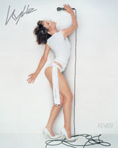 | Feel The Fever Just 3 mths after the end of the On A Night Like This tour, Kylie unleashed Can't Get You Out Of My Head to the world. The single became her biggest ever selling hit everywhere, including America which it helped to propel fever sales to 600,000 and the song went top 10 on the Billboard charts. In terms of success this album has delivered everything every fan would and could possibly want. In terms of budgeting and investment Kylie has finally been given some decent tools to work with. The video's are slick and perfected the new Kylie esque dance routines, and the outfits continue to shock, stun and make every man stare open mouthed at their MTV screens. The mass market has opened up with fever and the sales of now 7 million reflect just how many people have received the album with open arms. It has stayed in the UK charts for just under a year and is still top 10 in Australia as we speak. Its time you caught the Kylie fever? |