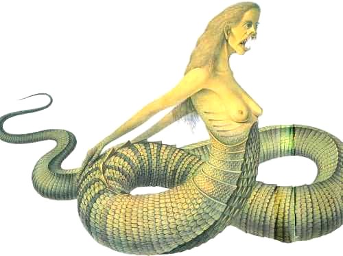 - ไทฟอนนั้นเป็นอสูรกายร้อยหัว แม้น้ำตาของมันก็เต็มไปด้วยพิษ มีลาวาใหลออกจากปาก เสียงดังราวสิงโตสักร้อยหัว หัวของมันสูงจรดท้องฟ้า ส่วนอีคิดนานั้นร่างกายส่วนบนเป็นหญิงสาวสวย ร่างกายท่อนล่างเป็นงูขนาดมหึมา และได้ให้กำเนิดเหล่าอสูรกายอีก 6 ตัวดังกล่าวไว้ข้างต้น เมื่อเทพเจ้าซีอุส สังหารอสูรกายไทฟอนแล้ว พระองค์ทรงไว้ชีวิตนางอสูรกายอีคิดนาและลูกๆไว้เพื่อทดสอบความสามารถของเหล่าวีรบุรุษในอนาคต