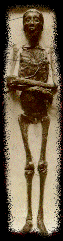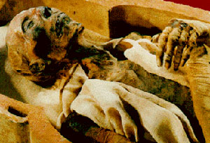 - การทำมัมมี่มีวิวัฒนาการมาเป็นลำดับ ในยุคก่อนประวัติศาสตร์ของอียิปต์โบราณ ร่างของคนตายจะถูกห่อหุ้มไว้ด้วยผ้าหรือเสื่อ อย่างลวกๆ และถูกฝังไว้ในหลุมแคบๆภายในพื้นทรายซึ่งลึกลงไปไม่กี่ฟุต ทั้งนี้เพราะความร้อนของทะเลทรายทำให้ศพอยู่ ในสภาพที่เหมือนถูกอบแห้งด้วยวิธีการอาศัยปัจจัยทางธรรมชาติ