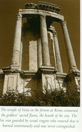ชาวโรมันเชื่อว่า ลัทธิบูชาเจ้าแม่เฮสเทียแผ่ไปถึงถื่นประเทศของตน โดยมีวีรบุรุษ อีเนียส (Aeneas) เป็นผู้นำเอาเข้า ไป แล้ว นูมาปอมปิเลียส (Numa Pompilius) กษัตริย์กรุงโรมจึงสร้างศาลเจ้าอุทิศถวายเจ้าแม่ขึ้นในกลางยี่สานโรมัน ซึ่งเรียกว่า Roman Forum เขาเชื่อกันเป็นมั่นเหมาะแน่นแฟ้นว่า สวัสดิภาพของกรุงโรมทั้งมวล และการแผ่นดินทั้งปวงนั้นขึ้นอยู่ที่ การรักษาเปลวไฟศักดิ์สิทธิ์ ณ วิหารนั้ให้ดำรงอยู่เป็นสำคัญ