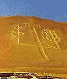 ที่หน้าผาหินแดงขนาดใหญ่เหนืออ่าวพิสโค ทางใต้ของเมืองลิมาประเทศโบลิเวีย มีรูปสลักลึกลงไปในหินมองเห็นได้อย่างชัดเจนจากเครื่องบินเหมือนกัน มีความสูงถึง 820 ฟุต กว้าง 12 ไมล์ รูปประหลาดนี้ นักโบราณคดีอ้อมแอ้มว่า เป็นสัญลักษณ์ทางศาสนาของคนโบราณ แต่ไม่ได้อธิบายว่า เจ้าของศาสนาทำขึ้นได้อย่างไร ในเมื่อจำเป็นต้องใช้เทคนิคทางการบินเข้าช่วย จึงจะสร้างออกมาสำเร็จอย่างที่เห็น