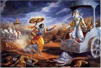 มาดูข้อความที่เค้าบันทึกกันไว้อีกดีกว่าก็มีอยู่ตอนนึงครับ เค้าว่าเอาไว้อย่างนี้ "Krishna ได้ติดตามล่าข้าศึกที่ชื่อ Salva อยู่บนฟ้า และจู่ๆ วิมานะของข้าศึกก็ได้ล่องหนหายไป และในทันนั้นเอง Krishna ไม่รอช้าครับ เค้าจัดแจงยิงอาวุธพิฆาตออกไปทันที โดยจะอาวุธพิฆาตนี้จะทำการสังหารและทำลายเสียงใดก็ตาม ที่เล็ดลอดออกมานอกจากวิมานะของตัว Krishna เอง"