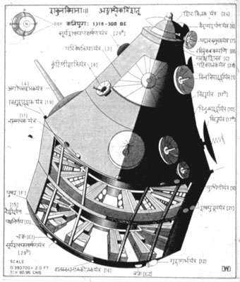 "มีลักษณะ 2 ชั้นประกบกันเป็นทรงกลมและยาวเป็นทรงกระบอก มีโดมอยู่ด้านบนพร้อมกับประตู บินได้ด้วยความเร็วของลม และส่งเสียงไพเราะยามบินอยู่บนท้องฟ้า" เป็นคำบรรยายถึงลักษณะของ "วิมานะ" หรือ "วิมาน" ของชาวอินเดียสมัยโบราณที่ได้บันทึกเอาไว้ ทั้งวิธีการบินและการควบคุม รวมไปถึงการสร้างวิมานะอีกด้วย ซึ่งวิมานะนั้นมีด้วยกันอยู่ 4 ชนิด คือ 1.Shakuna Vimana 2.Sundara Vimana 3.Rukma Vimana 4.Tripura Vimana (บางจารึกก็กล่าวว่ามันมีมากกว่านี้)