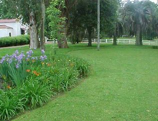 Al lado de la casa hay un patio de lajas con un aljibe. Sacamos algunas lajas e hicimos una plantacion de aspecto natural...Hay Ceratostigmas, Hemerocallis rosa oscuro y naranjas, margaritas, pastos, achiras de flor simple, bulbines y Salvia "Chola". Near to the house there is a patio with slabs