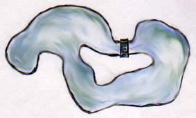 otro... An interesting shape is the "Amiba"...A simple way to obtain it is to draw three circles on the ground...and then join them with circular lines...(a hose can be useful for this, after drawing the circles, try to put a hose on the ground and find a satisfactory shape)...You can obtain very different shapes depending the size of the circles and the distance between them... |