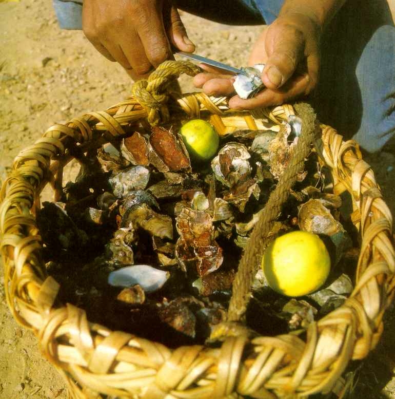 corales, caracolas, peces, crustáceos de costas cercanas, así como embarcaciones e implementos de