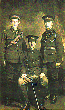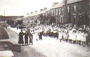 | Derwent Street, in Chopwell at the beginning of the 1900's and on the far left, two brothers and a friend who enlisted in 1914. Over two hundred men from the village were killed in the Great War |