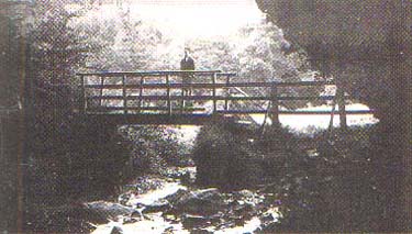 | Above is Wharnley Burn bridge and on the right is the headstone from the Wharnley Burn grave of the infamous mosstrooper, Thomas Rawe. He was refused burial in consecrated ground when he died in 1714 and was buried |