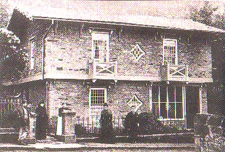 | Swiss Cottage dates to around 1800 and was the home of a local doctor at some time prior to 1860. The Barron family are seen posing for this photograph. |