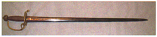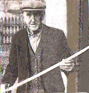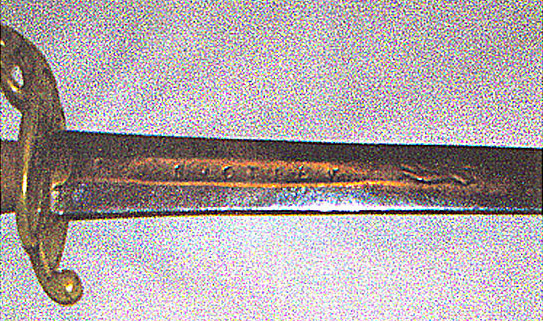 | This is Nicholas Oley, the last member of the German family of Shotley swordmakers. On the right is a close-up of a Shotley sword with 'Shotley' and the 'Passau Wolf' stamped on the blade. |