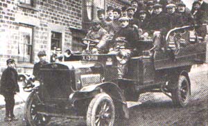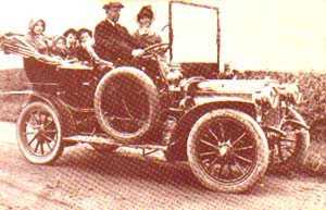 | buying war-surplus lorries, such as their first 5 ton Leyland pictured here on the right and Henry Ford's mass-produced models were quite popular. Before the war, very few cars were to be seen in a village and G.C. Johnson (a High Spen builder) taking his family for a run in his 1911 Argyle must have created interest, below. |