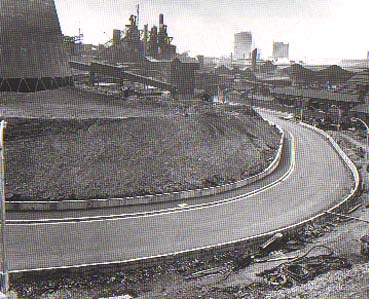 | The 'Canyon', or the road known to thousands of steelworkers, leading into the works |