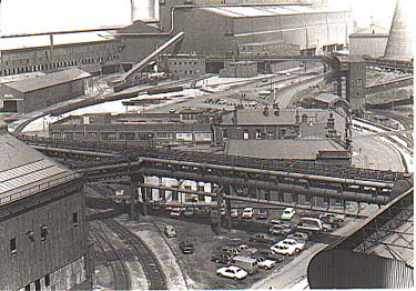 | Looking over the General Offices towards the Slab Mill on the left and the Steel Plant |