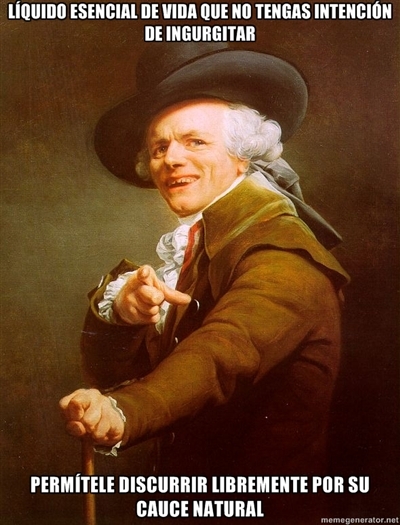 Agua que no has de beber, déjala correrCuando algo no es de nuestra incumbencia, lo mejor es no inmiscuirse y dejar que las cosas sigan su curso natural. Fuentes: Fuente oral La frase en si es muy gráfica, tomando por ejemplo lo siguiente: si nos encontramos en la orilla de un río y no vamos a beber de él, debemos dejar que el agua siga su curso hasta que llegue a aquellos que sí la necesitan o quieren beber de ella. Si no, no haremos más que poner impedimentos a que el agua llegue allá donde debe. Hay mucha gente que siempre tiene que opinar o meterse en todas las cosas, y muchas veces no se dan cuenta de que nadie les ha pedido su opinión y no hacen más que molestar. |