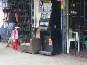 | Debido a los problemas psicológicos que causan a los menores de edad, los tragamonedas están autorizados a funcionar solamente en casinos. Hace varios meses, en vista del malestar general de los padres de familia, las autoridades competentes prohibieron ese negocio, que de paso era manejado por empresarios afuereños, que se llevaban un importante porcentaje de nuestro circulante; afectando, eso sí, al sector más vulnerable de nuestro cantón. |
