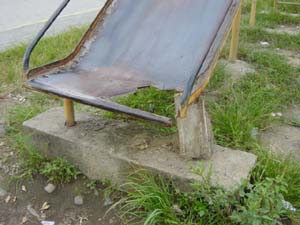 | Ninguno de los juegos se puede utilizar. Más bien constituyen un peligro para la salud al estar oxidados, ya que hay niños que insisten en ejercer su derecho a entretenerse, arriesgándose a cortarse y contraer tétanos. |