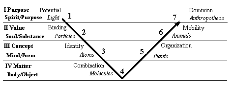 | PanenDeism refers to evolution as Process Evolution; a never-ending, co-creative, natural progression that is philosophically necessary in sequence and universal to all processes in nature. Process Evolution occurs in at least seven grand stages (possibly more), through at least four levels (possibly more) of evolutionary strata, or orders of reality. All evolution begins at Stage One as pure Spirit/Purpose, or Potential and exists in a level of reality (Level One) that is outside of space-time, and is known as Projective in nature (as opposed to Objective). In this zero-dimensional stratum (mathematically- point-like, or having infinite angle, but zero extension into space-time), the Divine is referred to here as Alpha, and can be described as Unmanifest Being. One might say, at this level, that God is potentially everything, but actually nothing (as concerning manifest or physical reality). Purpose and Freedom PanenDeism explains that there are two key correspondent features of reality that are inherently present in all levels or stages of matter and life in the universe- Divine Purpose and Complete Freedom. It is in the administering of Divine Purpose, as well as in the corresponding availability of Complete Freedom (in varying degrees), that Co-Creation occurs; introducing true novelty into nature, life and the human condition. Continue to Part 6... |
