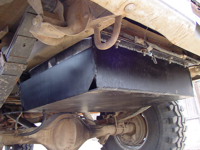 This picture gives a good idea of how far below the frame rail the tank sits. I