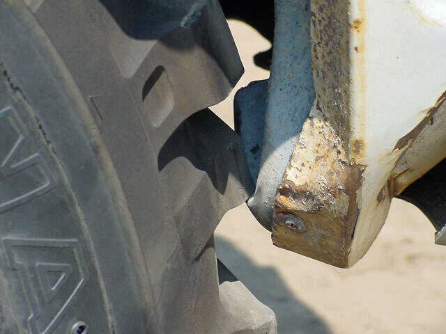 right front tire, the tire hit this wrinkle. A little hammer time will fix that