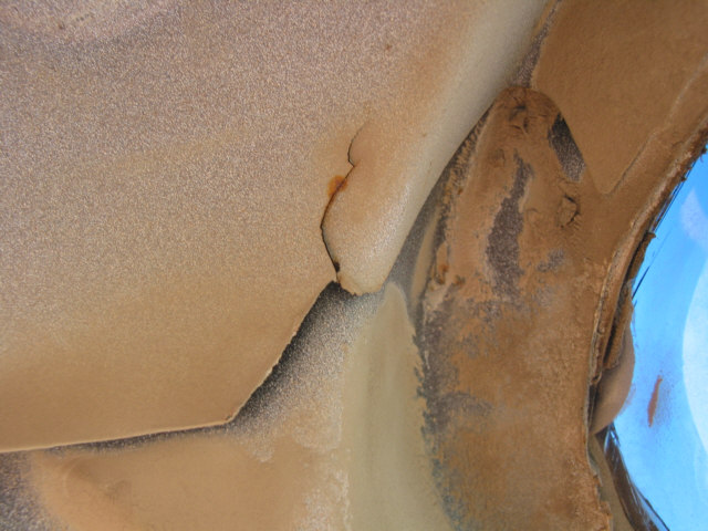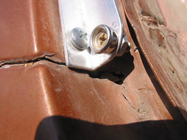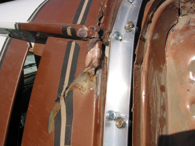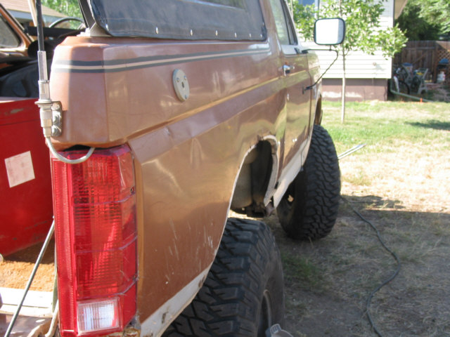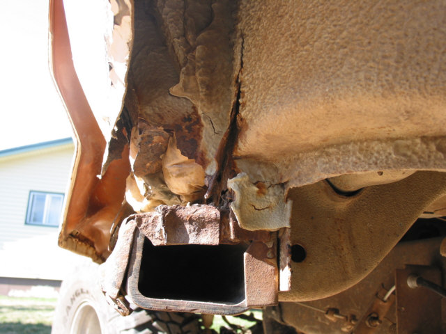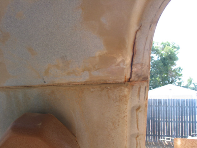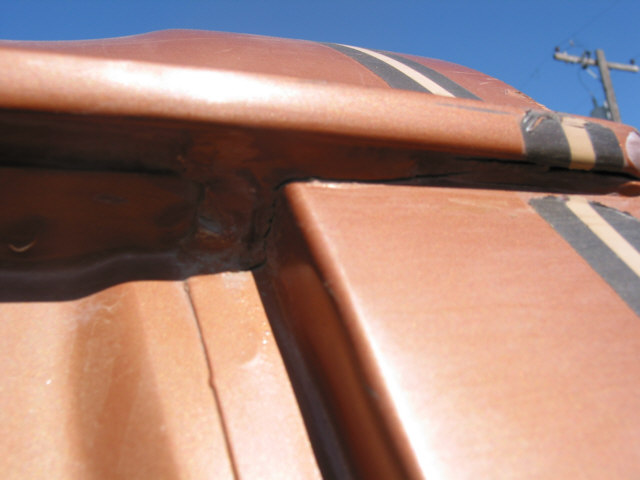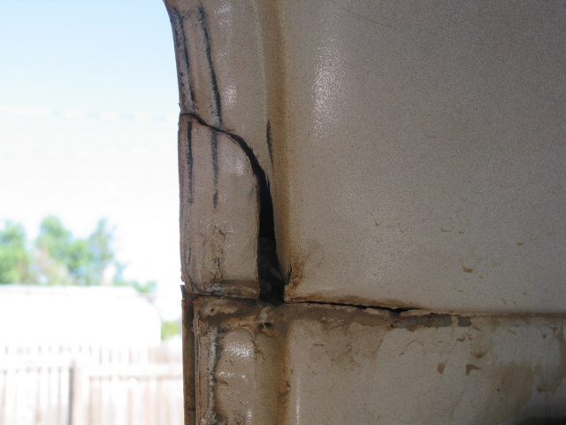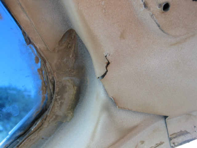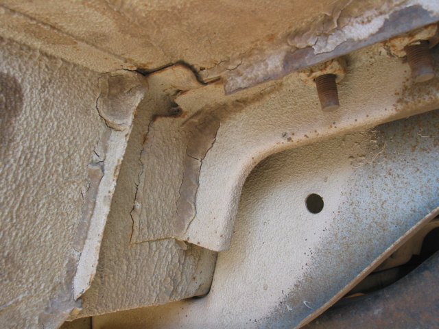 Body Damage or, How to tell when it's been wheeled to death After many years of running the Bronc over about any kind of terrain I could think of, I have learned many things about big Broncos. One of the more disappointing things I have recently learned is that the body does not hold up well to sever abuse. In fact, it's downright lousy. After much looking and head scratching, I have come to the conclusion that the problem is a basic engineering flaw. This isn't to say that the Bronco isn't build hell for stout, it certainly is. It's just that the way the frame flexes and the way the body is mounted just don't mix. The problem first starts appearing as a crack at the drip rail at the back of the cab section just above and behind the doors. Ford even had a TSB out about this problem for a few years. I've heard that their repair left a lot to be desired, I've never seen it done myself. It appears that the B-pillar, or rear of the door opening frame, becomes a focal point for stresses in the body. The stresses are introduced when the rear of the frame moves with the suspension and transfers stress forward along the bed sides and into the B-pillar. This stress also attempts to spread the bed sides as shown in the pictures below. When these stresses dissipate through the B-pillar, the pillar tries to move separate from the cab section and causes the body seams at the roof, along the pillar, and at the floor pan to warp and separate. As the seams continue to degenerate, stress becomes distributed to the windshield frame (A-pillar) and back along the cargo floor seams. The end result, after years of severe abuse, is that the roof isn't held on by much any more, the windshield is leaking, the body walls move separately from the floor pan, and things are getting pretty unsafe. Here are some pictures of the damage on the Bronc. I am sorting through options to heavily modify the body (remove the back and put on a flatbed) or to replace the body with a pickup cab and flatbed. The first option will require rewelding the body seams, which isn't too difficult to do, and I wouldn't have to give up my Bronco title by changing out the body. Click on any image for a larger view The first picture is the top of the driver's windshield post. Stress cracks here are bad. It's only a matter of time before the windshield breaks. The second picture is the inner seam on the B-pillar just above the seatbelt mount. The seam is completely broken and the upper panel moves separately from the lower panel. The first picture shows where the drip rail is pulling away from the roof. This crack extends to the back of the cab as shown in the next set of pictures. The second and third pictures show the cracked body seam on the outside of the driver's B-pillar and how it extends to the back of the cab section. The first picture shows how the infamous Bronco Crack progresses into an actual tear in the B-pillar panel extending toward the door fram. The second picture is the roof arch on the driver's side. The flange is tearing away from the roof structure and tearing towards the roof. The third picture shows how the damage is migrating to the inner roof panel. The first picture shows the crack growing along the driver's rear cargo floor starting at the floor pan kickup right behind the driver's seat. The rusty bulge also appears on the passenger side. I cannot tell what is causing these.The second picture shows the driver' side rear seat reinforcement pulling away from the floor pan. The third picture shows the lower part of the B-pillar itself pulling away from the floor pan. Passenger side A-pillar. Passenger side outside B-pillar cracks. Passenger side inner B-pillar cracks. These are much worse than the driver's side at this time. If you look closesly at the second picture, you can see that the upper panel has actually slipped down and over the lower panel. Notice the misalignment on the passenger door. The passenger side B-pillar pulling away from the floor pan. The first and last pictures show the sidewalls of the bed bulging out from folding of the C-pillar. The center two pictures show how the bedsides have spread at the top.The right side has been pulled back in several times now to get the tailgate to latch. These pictures have given me a new motto: If you aint tearing it apart, you ain't wheelin' it hard enough! |