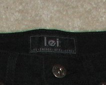 | LEI Brand Pants. Strtchy Fabric. Size 5 in Junior's. Very Good Condition. Has been worn and washed. Front and back pockets, Belt loops, w/ zipper and button. Machine wash cold on gentle cycle. |