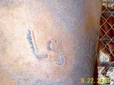 The following pics show various stages of hot brands. Granted, as with freeze branding, the more you do it, the better end result you will get from it.