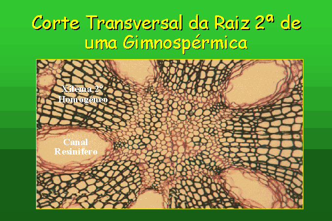 gimnospérmicas engrossa com a idade, desenvolvendo uma estrutura secundária,