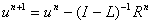 It can be seen that the last tem1 in the RHS (in square brackets) is the difference between the current value and the new value of u at step n. This is called the residual which, if denoted by R, we can write