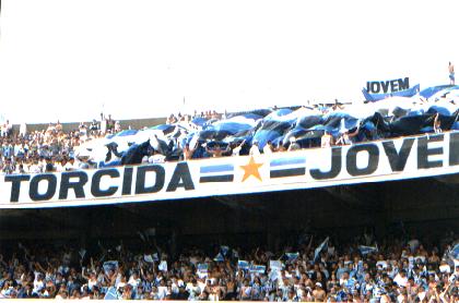 A Torcida Jovem do Grêmio foi fundada em 23/10/77 por um grupo de amigos onde o atual presidente foi convidado para fazer parte da torcida, desde então faz presente até a data de hoje. Durante 5 anos a Torcida Jovem foi a maior, depois dos resultados negativos a torcida deu uma caida, mas agora nós estamos mais uma vez com os títulos do Grêmio de chegar ao nosso ideal. Não queremos ser a maior, mas sim a melhor, tanto em vista que até hoje tem pessoas com 12 ou mais anos de TJG mostrando que somos um grupo de amigos. |