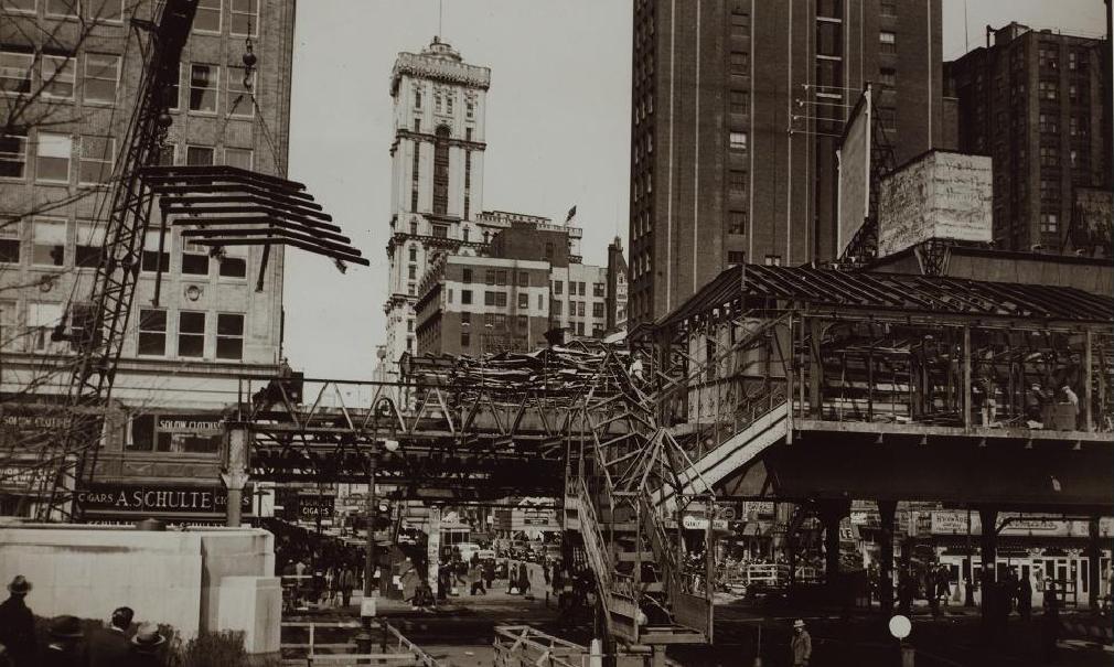 During 1939 this was the scene along Sixth Ave as the El was torn down. The iron and steel was sold to Japan. The steel was returned on December 7, 1941 and throughout the war in the Pacific.