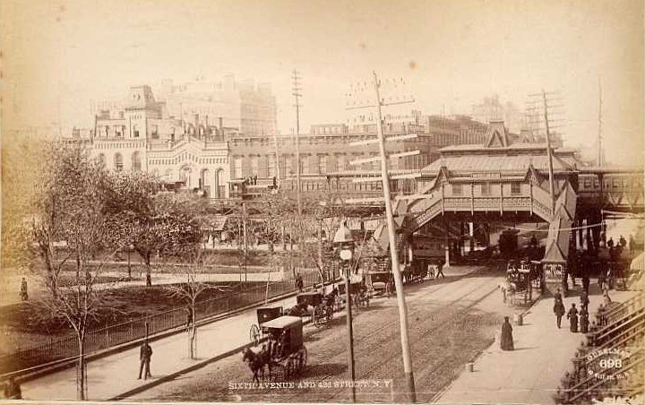 July 8, 1878 - The 6th Ave line was connected to 9th Ave line by a 2-track connecting structure from a westbound junction at 53rd St to a northbound junction at 9th Ave.