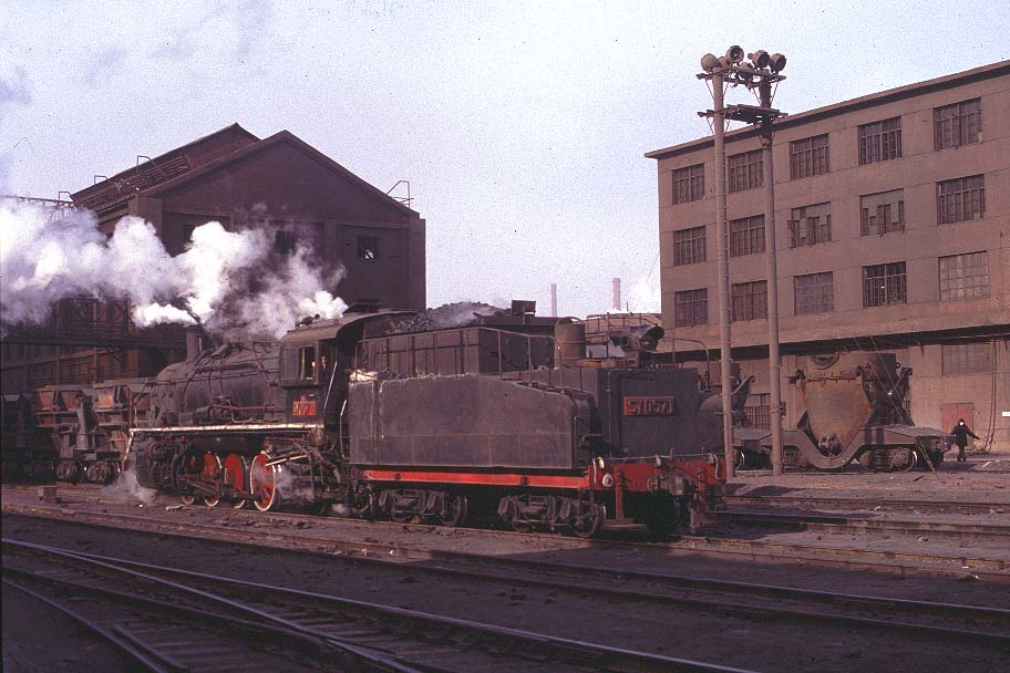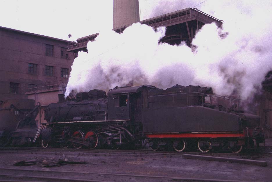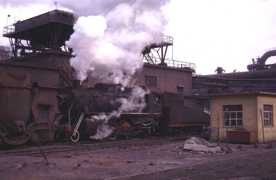 | 2-8-2 SY0571 backing down towards the blast furnaces - this was one of four engines working in and around this particular furnace. |