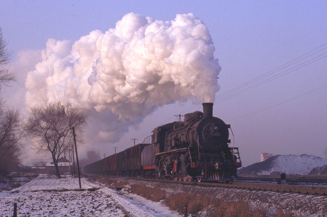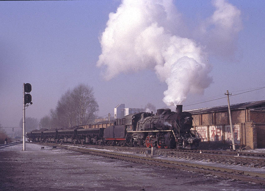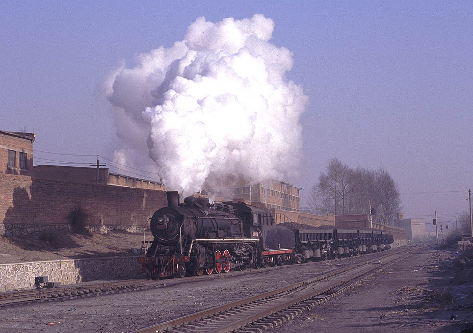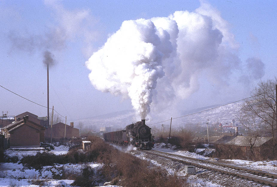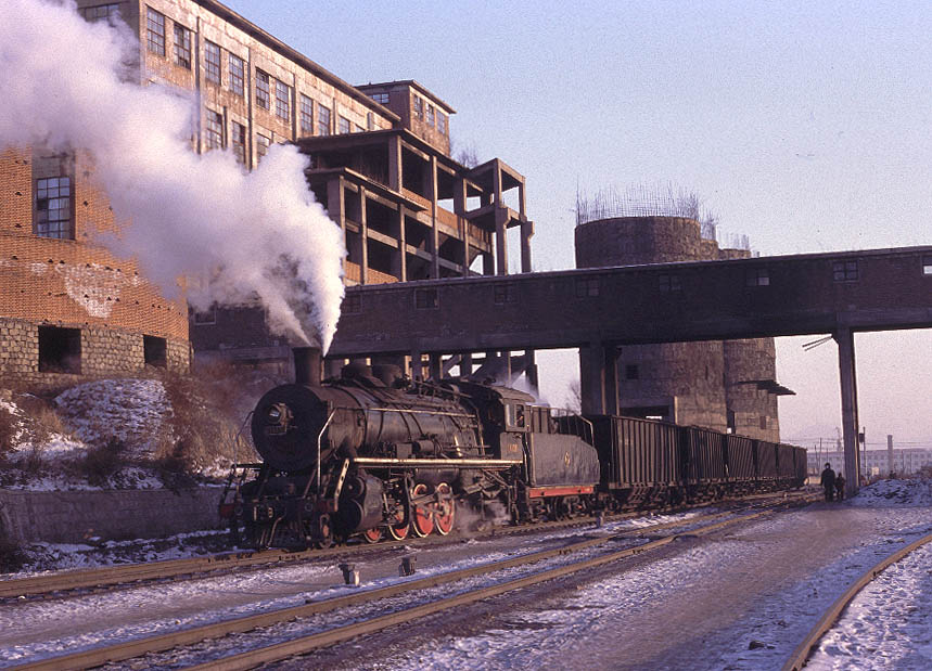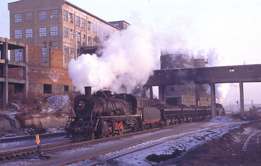 | JIXI - IRON HORSES AND DONKEY CARTS The city of Jixi is located about 200km north-east of Mudanjiang in Heilongjiang province. By far the easiest way to reach Jixi is to fly from Beijing and then catch an express bus to the city although it is just about possible to reach Mudanjiang by overnight train. There are four main centres of steam operation in and around the city. All the lines are worked by SY's and serve the numerous collieries in the area. Like most such systems, the normal pattern of operation is for a locomotive to take empties to the mine, shunt the yard and then return some time later with a train of loaded coal wagons. These are then taken to the CNR exchange sidings for onward movement across China. The four main centres at Jixi are at Chengzihe, Hengshan, Didao and Lishu. Each is a relatively short distance from the main city and can be easily reached by taxi or public transport. During my Christmas 2005 visit I concentrated on Chenzihe and Hengshan since both are relatively busy and offer the best photographic opportunities. At Didao all locomotives face north and so leave the washery there tender first. According to reports, many trains are propelled rather than hauled.thus adding to the problems of taking good photographs. Traffic on the little-visited Lishu system is relatively light and again photographic opportunities are limited. |