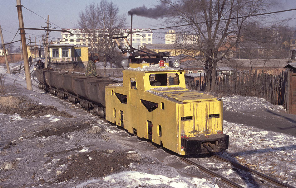 | SY0791 standing at the head of a long train of loaded wagons in Yijing yard prior to them being worked via the branch line to the CNR exchange sidings at Heishantou December 2004 |