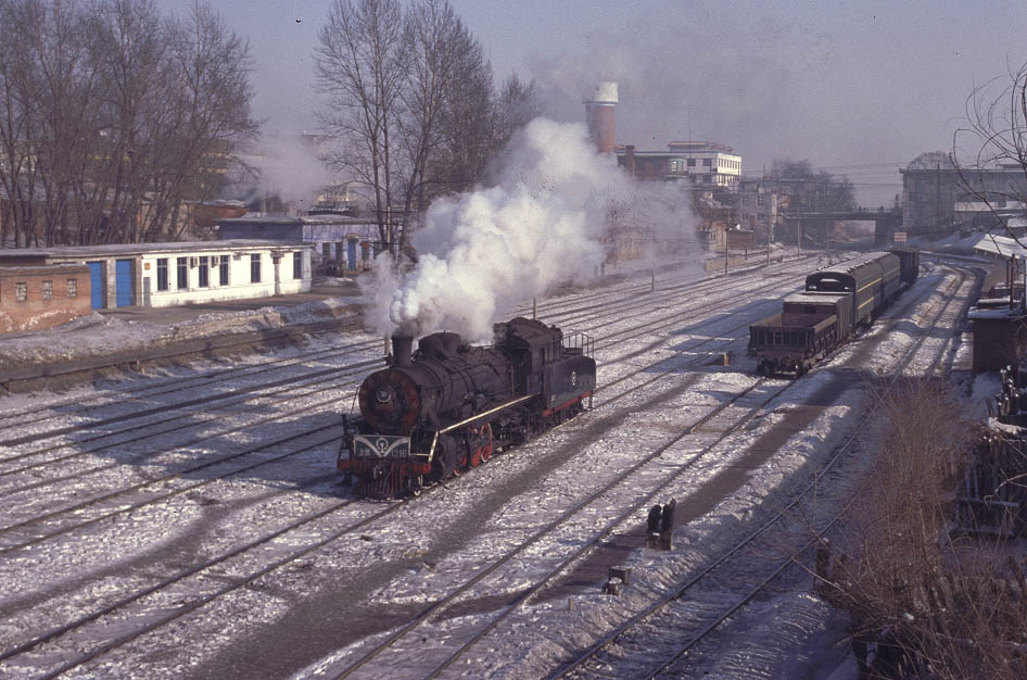 | With steam operation finished on the JiTong line there has been much talk of the 'end of steam in China'. Whilst it is true that mainline operations are almost finished, systems such as Meihekou still offer plenty of opportunities to see and enjoy steam hard at work. Fortunately no-one has yet decided to run a steam charter here or attempt to influence the normal day-to-day workings. As a result there was a warm welcome from crews and workers and no attempt to extract money for photographic permits or access to workshops etc. It was possible to ride the passenger trains and pay only the local fare - not some vastly inflated rate invented especially for visiting 'bignoses'. This was genuine working steam at its best. Meihekou is becoming increasingly popular and group visits more frequent. Lets hope that a responsible attitude will prevail and this endangered species can be protected for all to enjoy. I regret to say that I am pessimistic as to the future. |