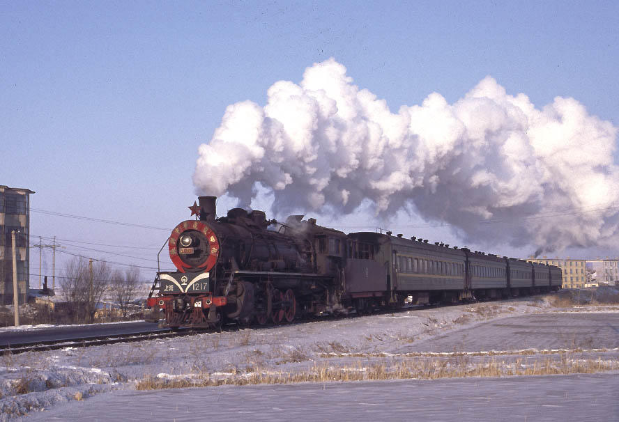 | I walked from Erjing back to Yijing pausing en route to capture the afternoon passenger train which was also in the hands of SY1217, which had earlier passed me working tender first towards Sijing. December 2004 |